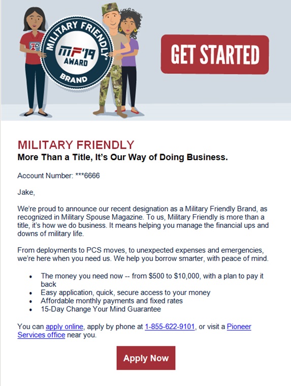 Military Friendly Brand All Customer email
